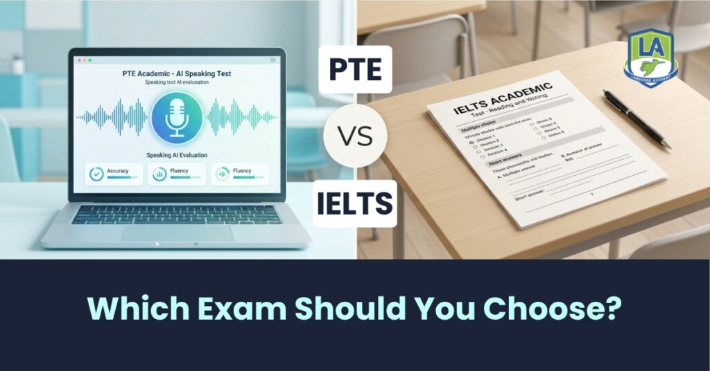 LA Language Academy offers structured guidance for both PTE and IELTS preparation. Our real exam-based mock tests and personalised feedback help you learn what and how to improve. We have video courses and comprehensive study materials with a question bank based on the latest exam pattern to help you prepare better.